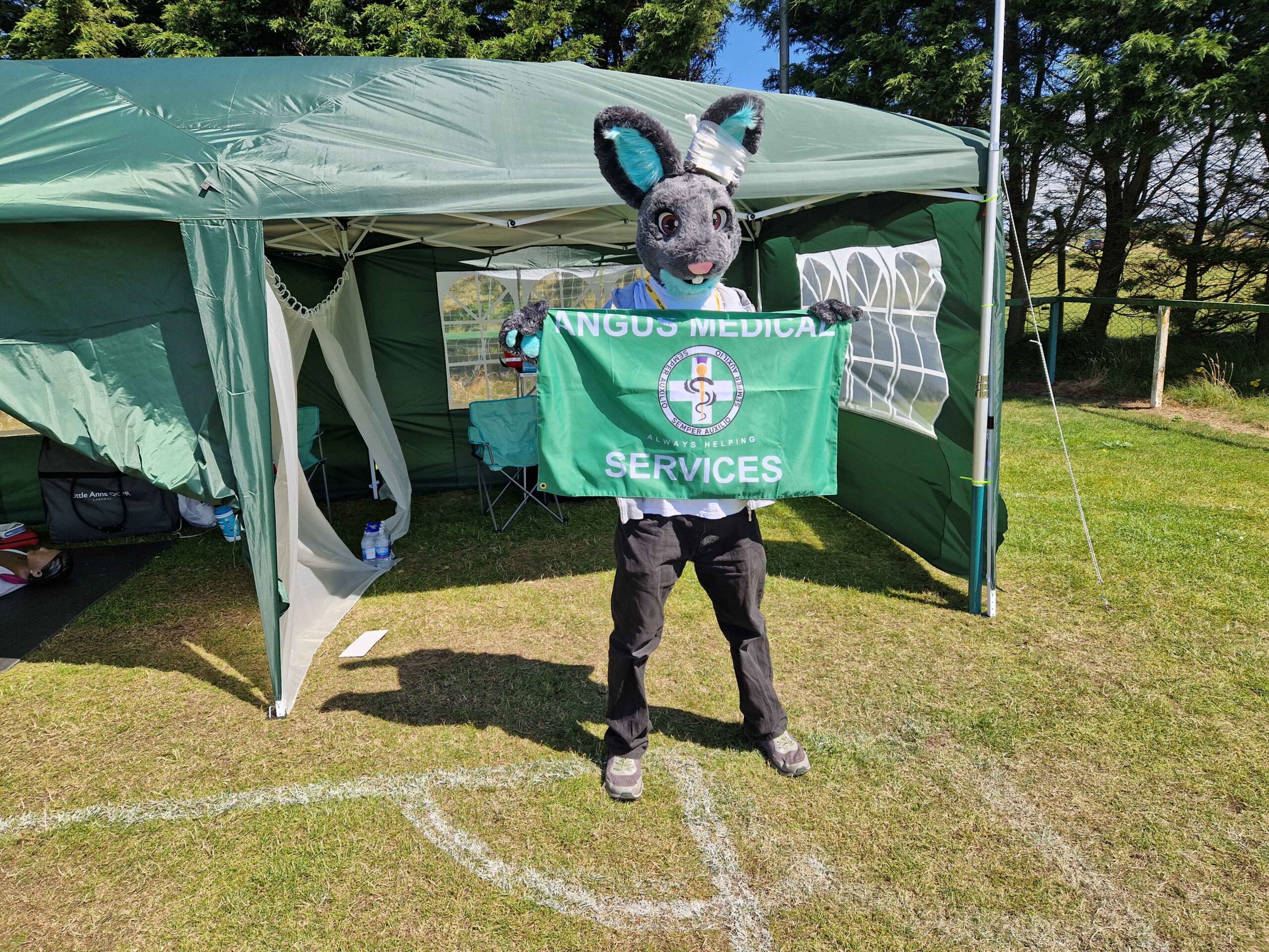 At the end of July 2024, we supported the event held by GlaxoSmithKline Montrose at their annual family picnic by providing first aiders. A special guest was also in attendance, the new mascot of Angus Medical Services, Bumper the bunny, seen here practicing his CPR. A good day was had by all, fortunately the weather held, we were able to test out our new First Aid Station and were able to establish what worked and what didn’t work so well for future events. Thankfully our services were not required on this occasion and we look forward to offering our services again.